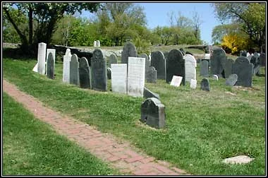 The Old Burial Hill was created in Marblehead, Massachusetts in 1638 at the site of Marblehead's first meeting house. Buried there are an estimated 600 Revolutionary Soldiers, only a few of their graves are marked. The graveyard has creatively designed headstones that reflect the times of the Puritians. Buried here were soldiers, fishermen, sea captains, victims of the Salem Witch Trials, wives, and children. It is believed the graveyard is no longer accepting new burials. The place is still maintained and has three entrances; one on Orne Street, the second is nearby on Pond Street, the third is by Red's Pond (Kane, 2012).